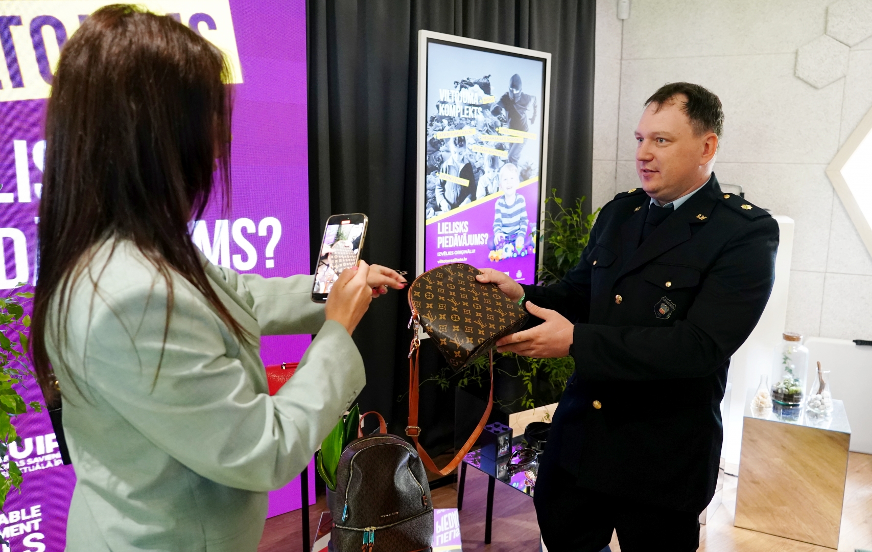 Klātesošie varēja aplūkot viltojumu ekspozīciju, pārbaudīt savas zināšanas, proti, vai var atrast pazīmes, kas liecina, ka konkrētā prece ir viltojums, kā arī izspēlēt lielformāta atmiņas spēli, lai visi kopā pārliecinātos, kas nāk viltojumam komplektā.