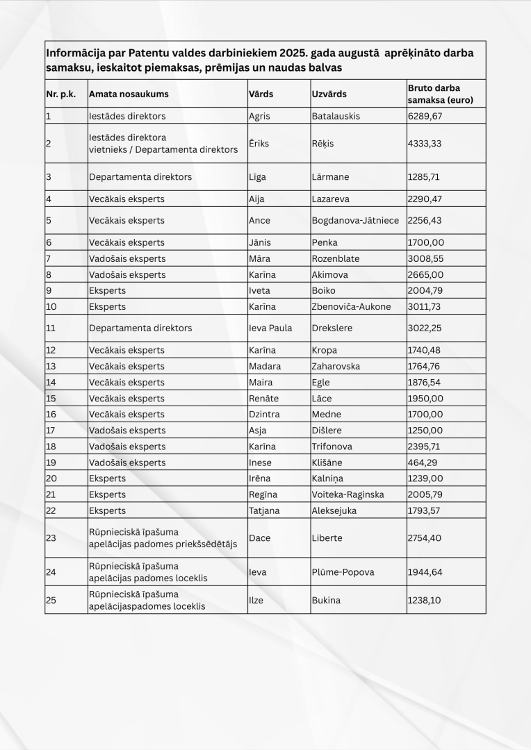 Informācija par darba samaksu 2025. gadā